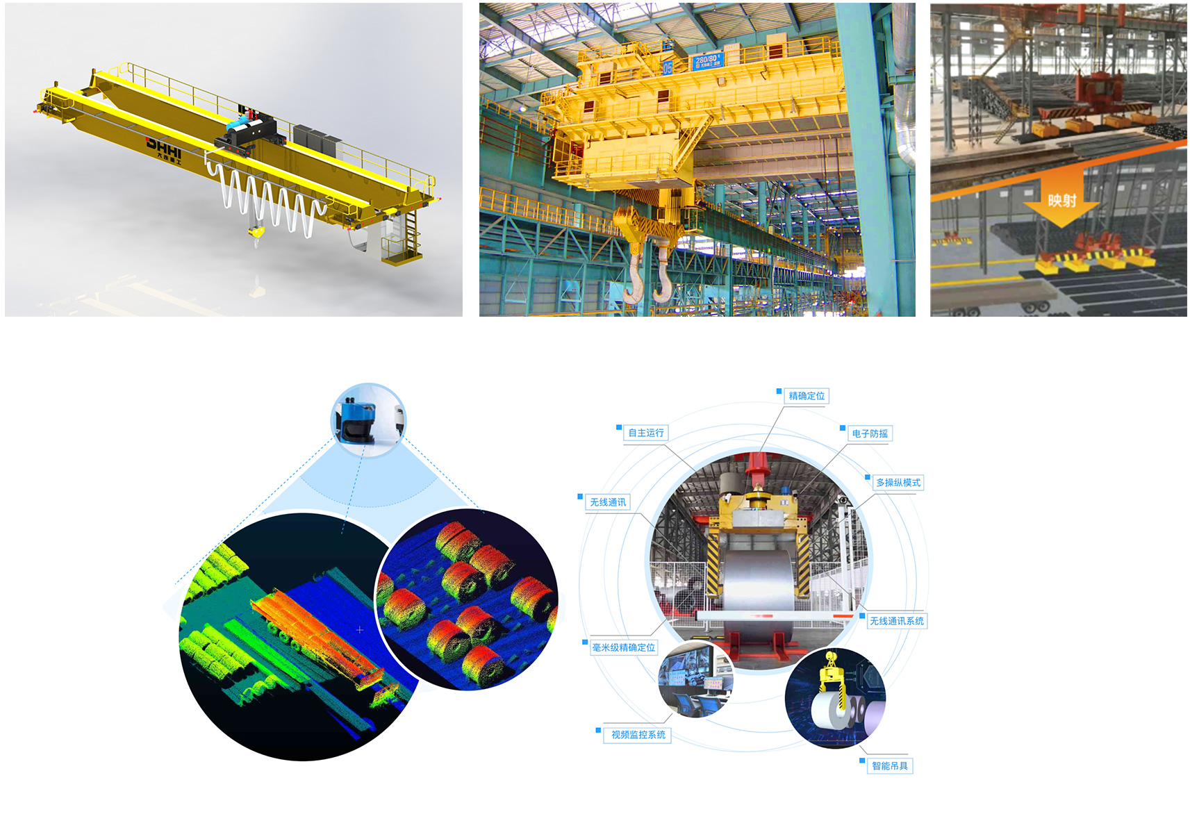 大連重工致力于鋼水罐、鐵水罐、鋼卷、鋼板、方坯、鋼錠、棒線材、煤、礦等物料無人化搬運系統研發,可為客戶提供包含機器視覺、智能算法、故障診斷、壽命管理、遠程監控與運維、智能起重設備、智能地面輸送設備等子系統及設備的整體解決方案。