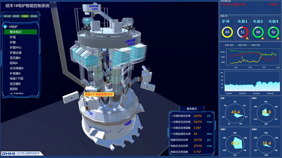基于先進的物聯網思維和大數據分析手段,以完善的儀表檢測為基礎、礦熱爐智能控制模型為核心,包含能效評估系統、故障診斷系統、調度管理系統、生命周期管理系統、智能巡檢系統、數字孿生系統和遠程運維平臺的冶煉工程智能化解決方案,該系統目前已在新太元鉻鐵冶煉、碩豐鉻鐵冶煉項目中使用,取得了較好的應用效果。