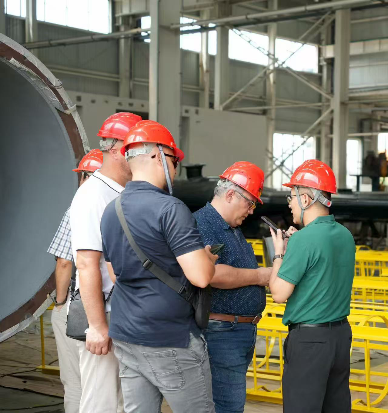 隨后,考察團參觀了企業生產車間,實地了解設備制造工藝及質量控制流程。雙方技術專家圍繞技術參數、應用場景、環保標準、設備適配性、后續服務保障等議題進行了專業探討,并就后續合作細節達成初步共識。